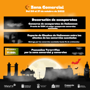 ¡APOYA AL COMERCIO LOCAL con un toque de TERROR! Este Halloween en Arrecife, la compra tiene premio… ¡y susto! Nuestros comercios te invitan a celebrar con estas actividades: • ¡Dulces…